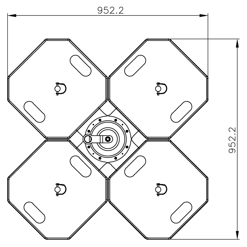 Es besteht aus 4 umformten unteren Platten und 12 oberen Platten, die jeweils 25 kg wiegen.